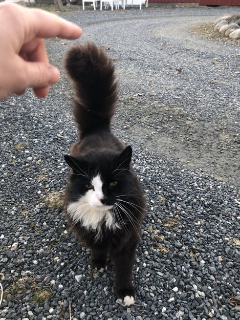 Hannkatt som plutselig var på tunet her og ikke ville dra igjen, har vært her noen uker nå. Den var fryktelig tynn, dehydrert, full av flått. Derfor har han fått ormekur, flåttbehandling vann og mat. Han er ikke chippet (sjekket)