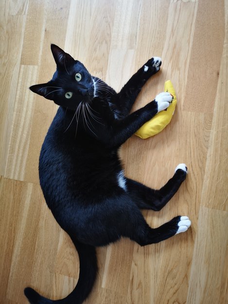 2 år gammel hunn katt, svart og hvite flekker. Veldig leken men også usikker på mennesker.