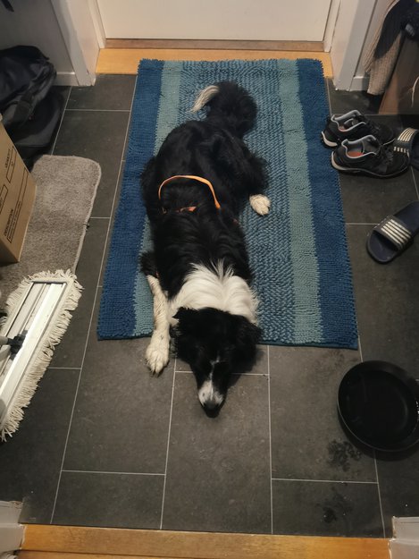 Mangler halsband.låner sele av oss.