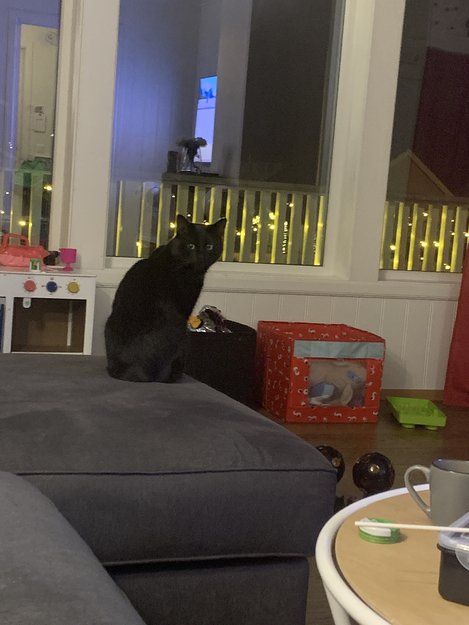 Har gradvis vent seg til oss og kommer inn for å spise, men er svært lunefull og for vill til å bli en «familiekatt» i en barnefamilie.