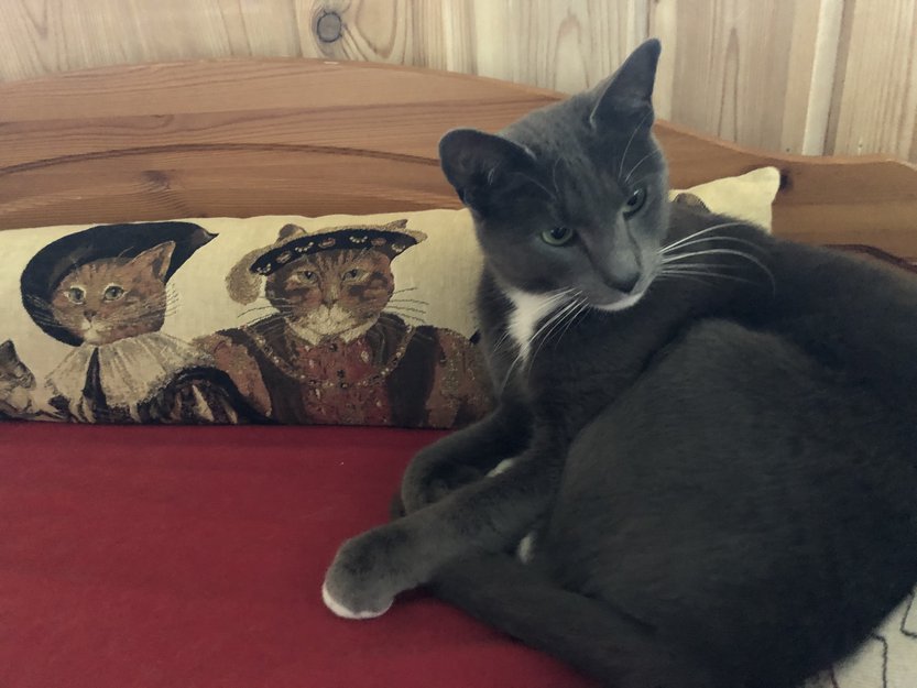 Slank med lange ben, hadde halsstrikk med mitt tlf nr. Den er omplassert fra Skien for to uker siden, eier er min sønn og svigerdatter, Olav og Madeleine Bæverfjord, de bor nå i Porsgrunn. Tror de har id-merket katten