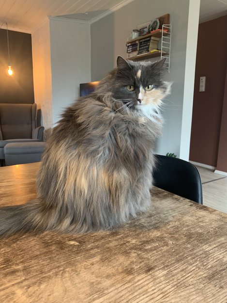 Pus har vært med på hytta for andre gang og har ikke vist seg hele helga. Vi bor på Abildsø i Oslo og lurer på om hun kan ha bevegd seg hjemover. Hun har blitt klipt for ca 2 uker siden, så ser litt lysere ut enn på bildene og mye kortere pels(løveklipp)