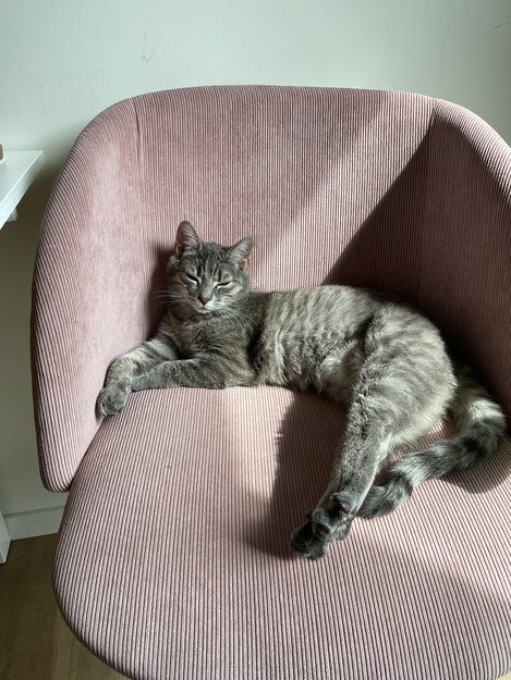 Pus stakk av med bånd utenfor døren. OBS båndet er nå funnet. Han har aldri vært ute før nå. Han er en snill og kosete katt, men sikkert kjempe redd. 10 mnd gammel, så han er ikke så stor.