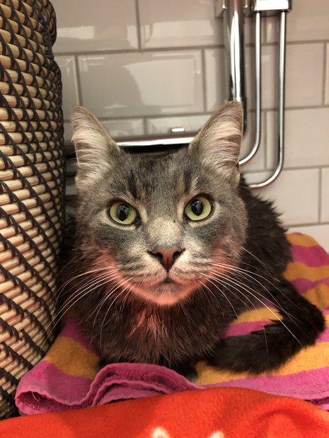 Noen som savner denne nydelige pusen på Ammerud eller i Groruddalen? Grå, skjønn hannkatt funnet ved atriumhusene øverst i Ammerudgrenda på Ammerud. Den er ukastrert og ikke chippet (vi har sjekket nå hos vet). Den har vært en del her på feltet i det siste uten at vi som bor her kjenner den. (Vi er mange katteglade som har egne katter her, og vi har derfor god oversikt over kattene i nærheten). Flere naboer har stusset over at den plutselig kommer så mye på besøk uten at noen kjenner den. Ikke gikk den «hjem» under gårsdagens uvær heller, men ble sittende under noen hagemøbler hos naboen. Ingen i borettslagsgruppa vår har meldt seg som eier. På bildet innefra badet vårt er den veldig våt i pelsen.