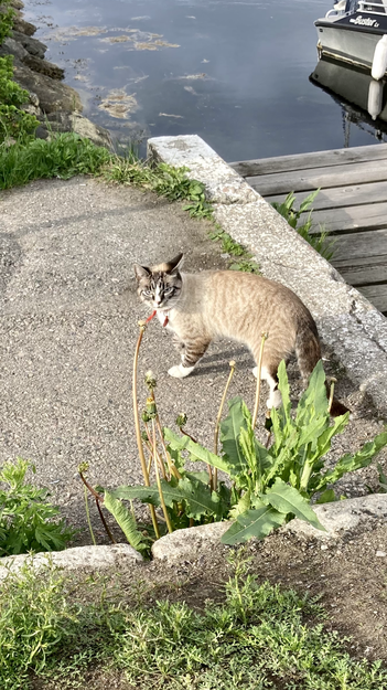 This little guy looked lost, wondering around by the sea, close to KRO restaurant in Frogner at ca. 8 o' clock this morning. It has a red medalion with "MOLLY" on it. It's friendly, gets close to people, maybe hungry. I did not take it with me, thought maybe someone is looking for him/her.
