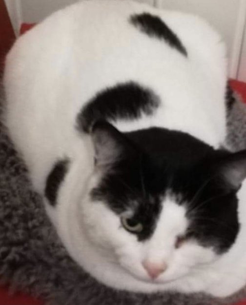 Flekk har hoppet ut av vinduet om natten. Jeg behandlet han mot ørebetennelse og et sår med infeksjon i nakken på høyre side. Han har hvit pels med sorte sirlulære flekker. Han er snill og sjenert. Snakket norsk, spansk og katt. Han har en liten skade på ryggen, og liker ikke å bli klappet på ryggen eller å bli båret. Han spiser tørrfor, latzy,whiskas, tunfisk pate og mye annet gøy. Han liker å være ute om natten og det var da han hoppet ut av vinduet. Normalt veier han 5-6 kilo, nå er han kanskje 4-5 kilo. Kontakt meg gjerne på 93 64 87 80 om du ser ham. Vennlig hilsen Trond og Ana