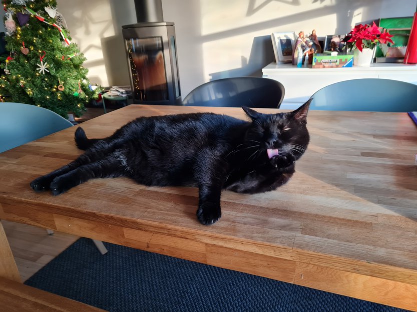 Alfred har tidligere vært overvektig og har derfor litt "hengemage". Alfred veier 6.5 kg og er akkurat passe stor og fin nå 😻