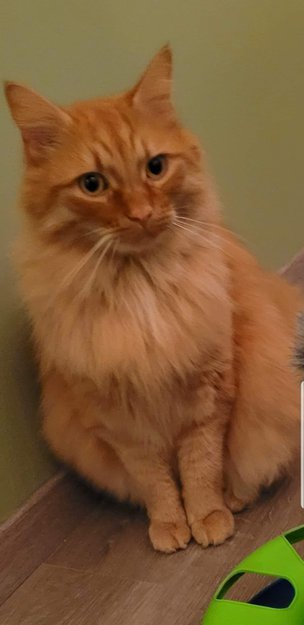 Relativt stor hannkatt. Snill og rolig. Orange over hele kroppen. Stor fluffy hale. Ta gjerne bilde om du ser han.