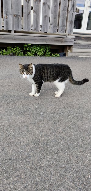 Gått rundt emaus barnehage i 2-3 uker, eier ikke meldt seg ved etterlysning. Tillitsfull, litt tynn, pratsom, og kastrert.