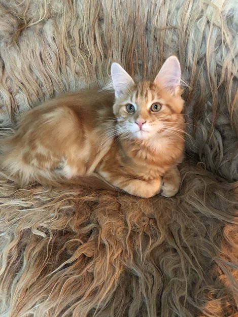 Bustete pels i rødtoner. Stor og buskete hale. Hvit på snuten og rundt øynene