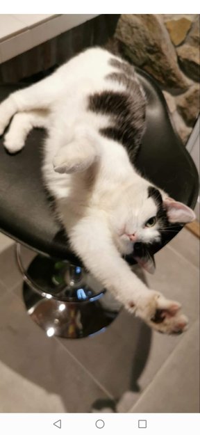 Svart og hvit hunkatt. litt over 1 år gammel. Pleier være skeptisk til mennesker. To store runde øyne som kan lett gjenkjennes. Katten er relativt liten for sin alder.