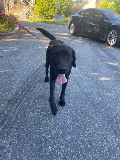 Sort labrador lignende hund funnet idag kl. 1830. Solnes mellom Erdal og Ask på Askøy.