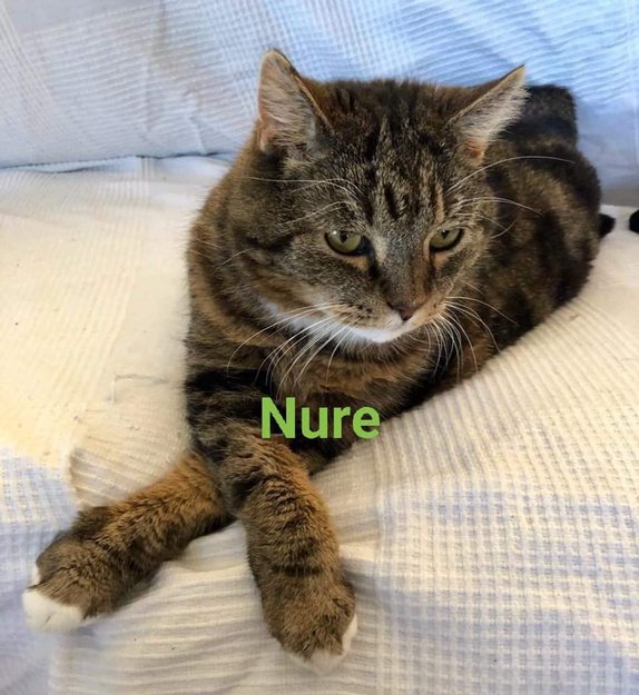 Nure kom ikke hjem som vanlig, Vi er redd han er stengt inne siden han er redd for fremmede. Fint om du sjekker garasje/bod og kjeller, og kikker i kroker og kriker, fordi han ikke kommer frem når det er fremmede.