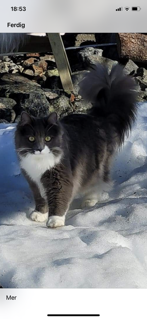 Grå og litt hvit hannkatt var savnet i Hakadal