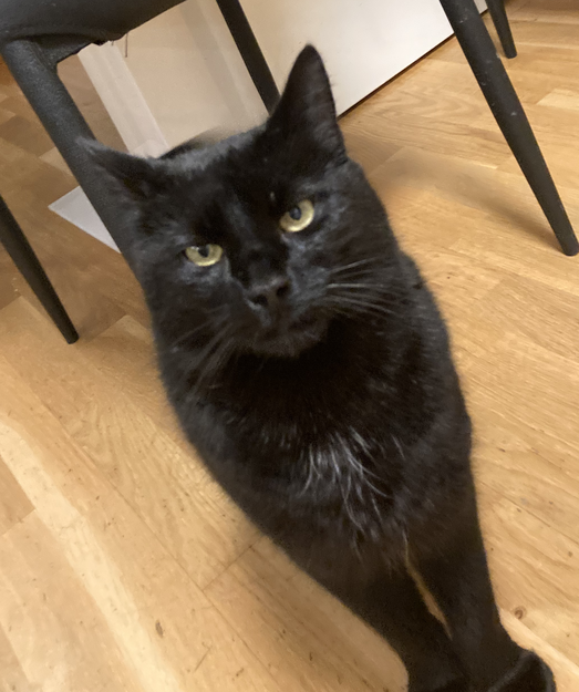 Puseline er sort, med noen få hvite hår på brystet. Hun har gule øyne og et skeptisk blikk. Hun er en nokså stor hunnkatt, ca 5 kg. Vanligvis er hun nokså folkesky, så vi ser ikke for oss at hun har fulgt etter noen hjem.
