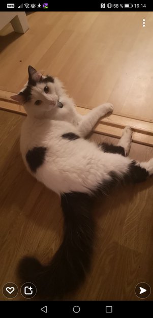 Svart hale. Hvit pels med en svart rund flekk på den ene siden av magen eller litt svart på øret og oppå pannen.
