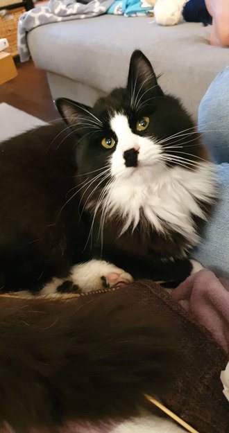 Kristoffer liker ikke høye lyder. Vant med barn. Ruller gjerne rundt på rygg for å bli klappet på magen. Hvit på bena. Svart lang pels på kroppen. Hvitt på brystet og i ansikt. Spesielt kjennetegn med svart pels nedenfor nesen og svart nese. Hvite værhår. Gule øyne. Halen er ofte full av kvist og løv. Lyder navnet Kristoffer, snuskelusk.