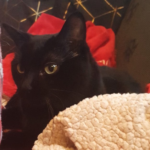 Hun er helsvart, kort, blank og myk i pelsen, hun har også viker på hodet (fra øynene og mot ørene) når du ser henne fra siden som du kan se huden hennes imellom pelsen.