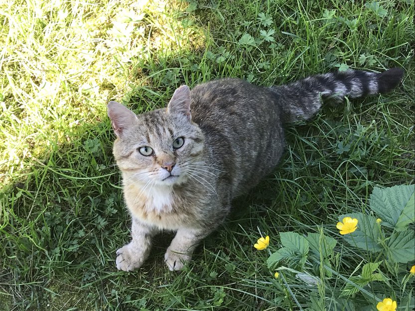 Sett katten i området svært sporadisk i ett år. Gikk i ei felle ment for en annen katt. Var ikke ID-merket og tatt inn pga. hjelpeplikt da katten var preget av livet på egenhånd.