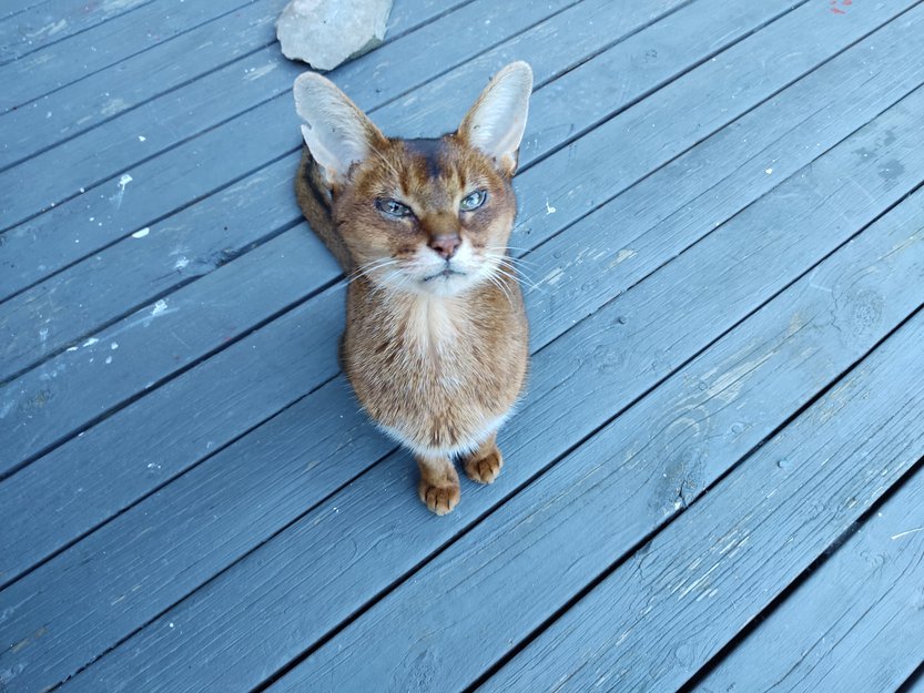 Tror rasen er abbysiner. Rødbrun-ish. Katten oppholder seg i området her. Ikke hjemme hos oss.