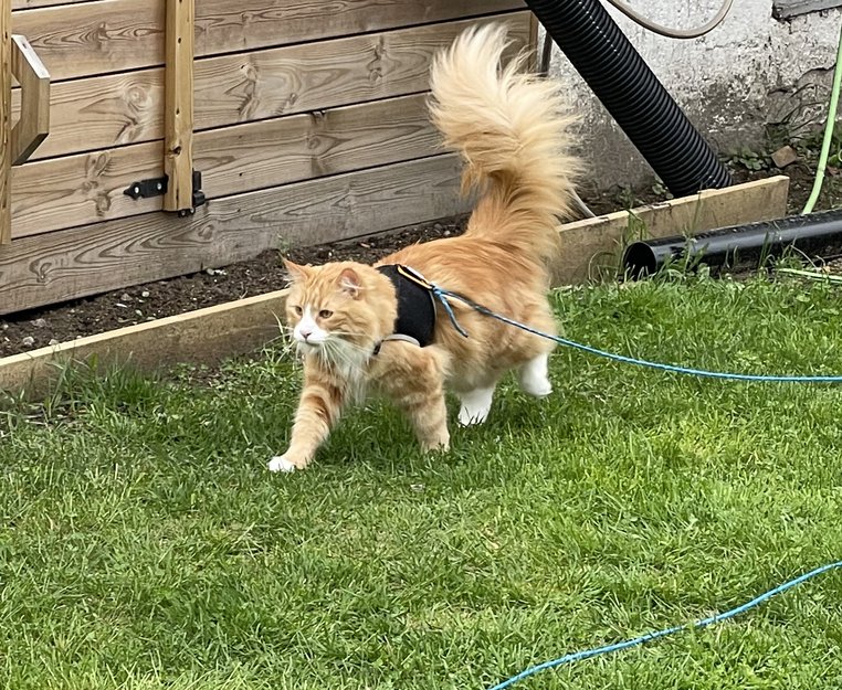 Han er innekatt så vet ikke om han finner veien hjem. Han er chippet og kastrert.