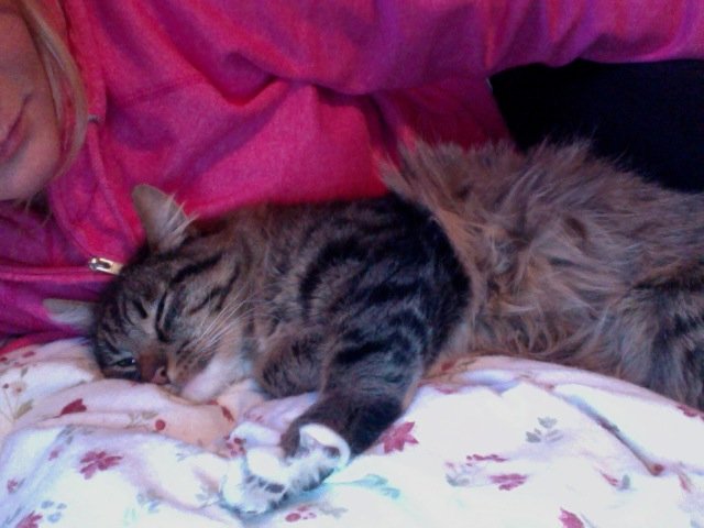 Pusegutten er rundt 2 år, en voksen katt. Han er vanligvis VELDIG snill og imøtekommende, og kan fint komme over gaten til fremmende for å kose om de puser på han. Ellers har han hvite "sokker" på føttene, og desverre inget halskjede for øyeblikket.