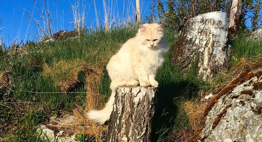 Stor, hvitgul hannkatt. Masse pels. Veldig pen. Lyder navnet Simba. Glad i kos, noe redd biler.