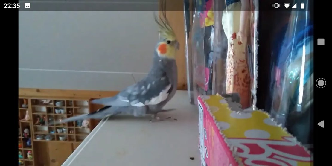 Den er ringmerket. Ellers ser den ut som en vanlig nymfeparakitt.