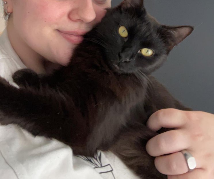Hun er utekatt, men liker ikke å være ute over lengre perioder, da hun også er en lat og kosete utekatt.