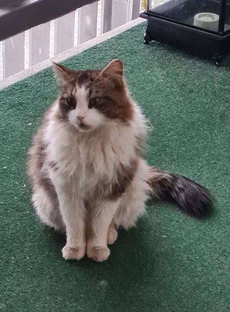 Pga flokete pels etter vinteren, ble han for en mnd siden barbert hos veterinær på begge sider av kroppen. Denne pelsen er dermed fremdeles ikke fullt utvokst.