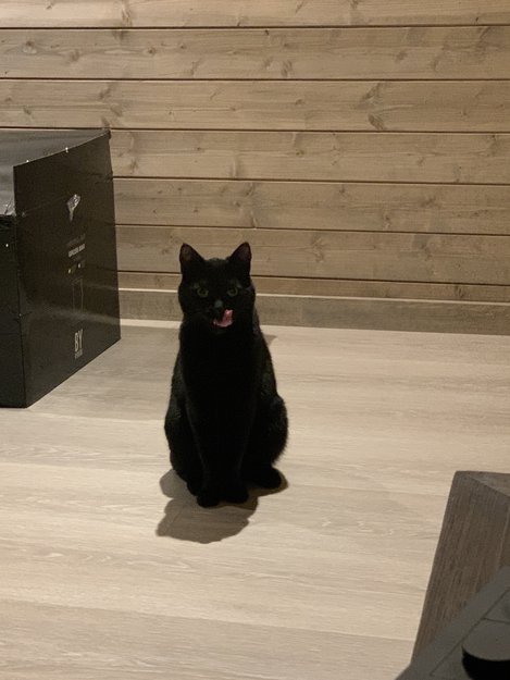 Hun går inn og ut gjennom egen katteluke. Ble sist sett tirsdag formiddag. Har ikke sett henne siden. Hun har muligens vært inne torsdag og drukket vann, men vi har ikke sett henne. Jeg har også gått en runde i nærheten for å se etter henne, men ikke funnet henne så langt.