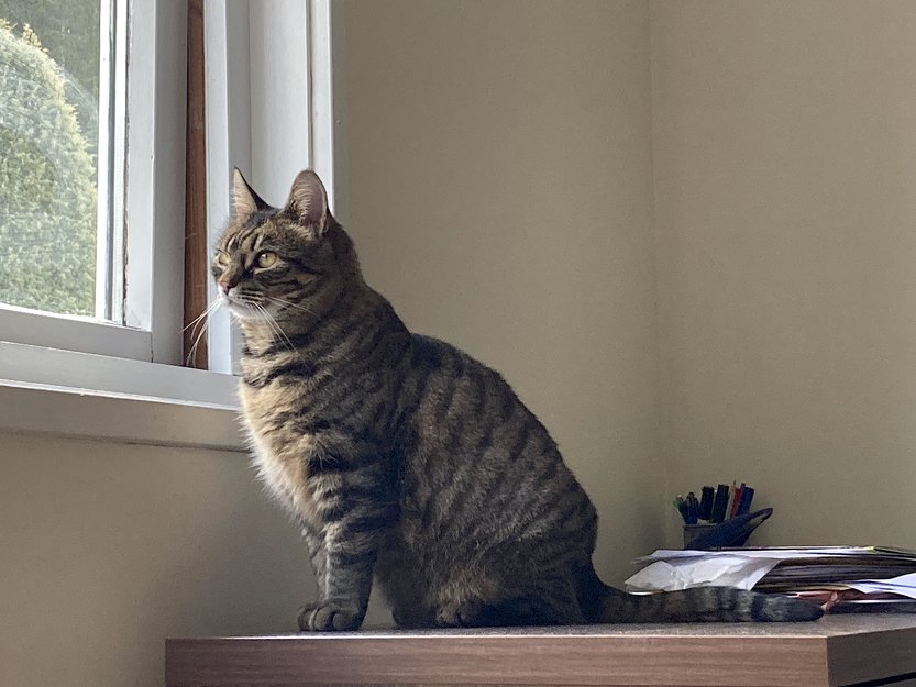 Laurdag formiddag tok liten pusen sjansen å slippe ut av vindauget. I fleire månader er Rosi forelsket i ein oransje pus frå området. Han kom fleire gongar for besøk. Kanskje kan ein finne dei begge saman under ein busk eller/og nær eit hus.