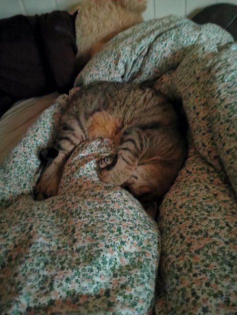 Katten hadde klatret ut vinduet om morgenen og siden det har katta vært borte. Har sett hun 2 ganger siden hun ble borte. Men begge gangene har hun rømt for livet omtrent. Uansett hva vi prøvde