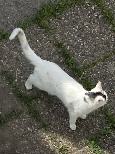 Katt har de siste dagene hengt ut her i nabolaget. Virker sulten og kontaktsøkende. Prøver å komme seg inn. Ingen av naboene gjenkjenner den.
