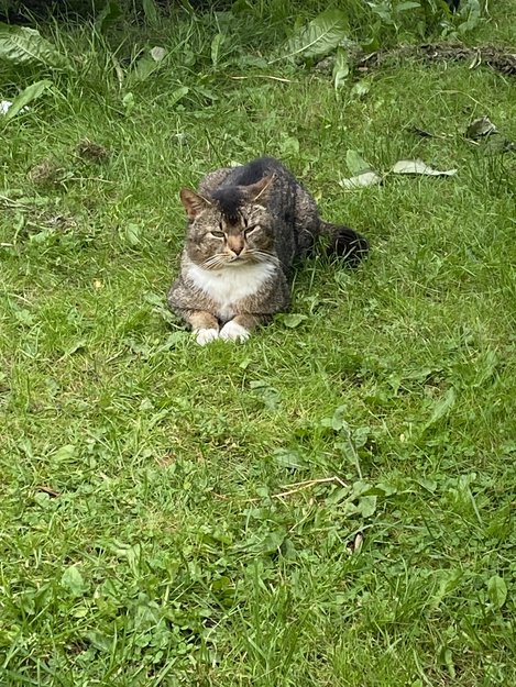 Denne hannkatten har holdt seg i nærområdet i flere mnd. Nå ser jeg den daglig. Den er sky, og jeg får ikke sjekket om den er chippet. Går inn katteluka i garasjen, samt under terrassen vår. Smetter inn å spiser litt kattemat hvis det er åpent.
