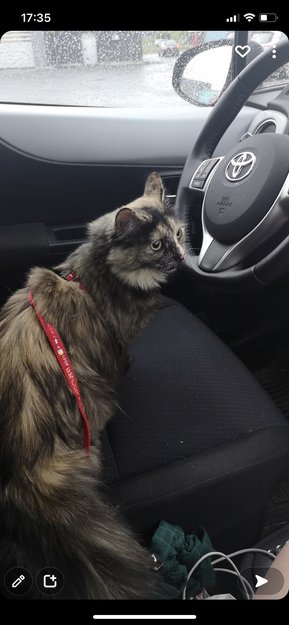 Nala er en veldig sky katt, hun oppsøker sjeldent nye mennesker. Derfor kan det være lurt å sjekke bod/skur litt godt da hun kanskje gjemmer seg.