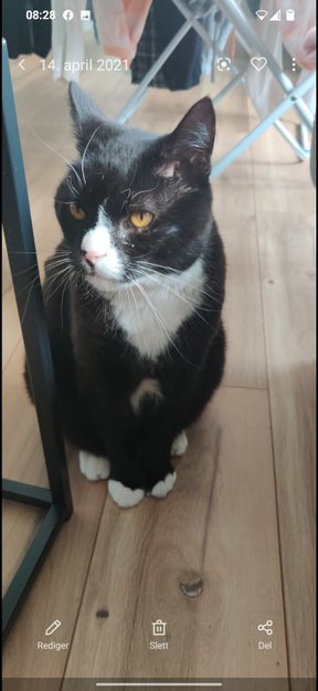 Natt til lørdag slapp jeg ut Rambo, ca klokka 02.00. Da var han ivrig og ville ut. Han er en katt som elsker å være ute på natta og liker å være inne på dagen. På lørdagen var det skikkelig dårlig vær, regna og kaldt. Da pleier han å gjemme seg ett sted der det er tørt og lunt, og komme frem og hjem når det er opphold. Men denne gangen kom han ikke hjem. Jeg har vært ute og ropt på han, men ingen respons. Han er en katt som elsker å være ute, så tenkte at han er ute en stund for seg selv.
