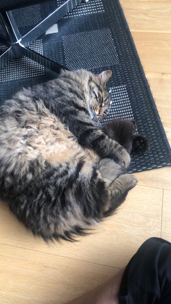 Den er blanding av vanlig huskatt og skogskatt så den er større enn de fleste kattene i nabolaget. Veldig pratsom og glad i kos. Han har også en chip så om du finner han og lurer på om han er vår ta kontakt med oss eller dyreklinikken her på Tasta.