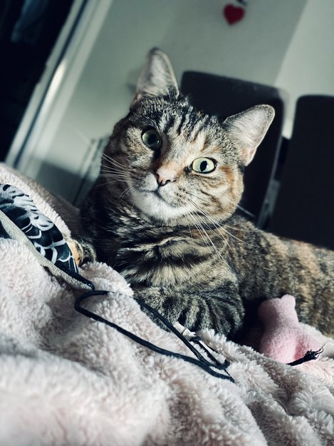Ingen spesielle kjennetegn, men ho er veldig var for lyder og bevegelser.