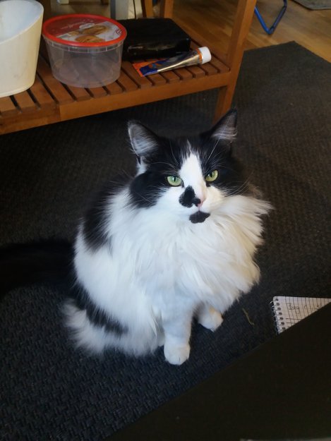 Har ikke kommet hjem siden tirsdag. Det er ikke uvanlig at hun er mye ute, men aldri så lenge som nå. Hun er litt for uredd for biler og veien, da hennes bestevenn er rottweiler, noe som gjør henne litt overmodig. Jeg er redd hun kan ha forvillet seg inn i en kjeller eller ferieklar garasje. Hun ble kastrert og chipset før hun ble kjønnsmoden, noe som gjør henne til et lett bytte for hannkatter. Hun er sjenert og litt folkesky, med fremmede. Veldig kosete, hvis du får kontakt. Hun har en stor svakhet, hun elsker kattegodteri og kan kanskje lokkes med det.