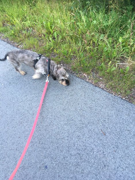 Normalt overglad og ivrig i møte med andre, bjeffer mye.