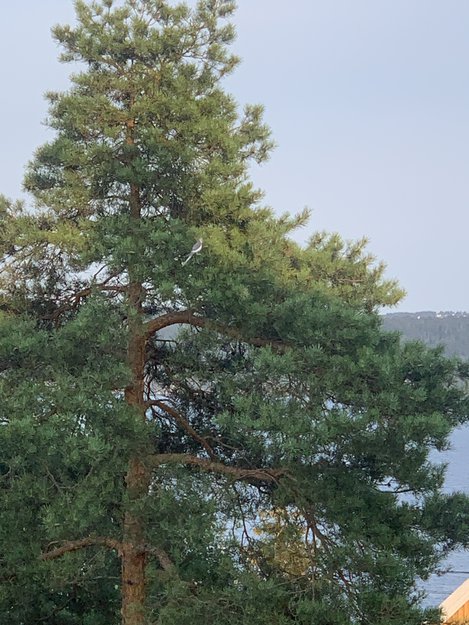 Det sitter en nymfeparakitt her ute i et tre og roper.