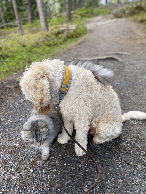 Suki er vant til hundene våre, men skvetter unna hvis fremmede hunder reagerer på henne. Hun er veldig hengiven og kosete. Iallefall ovenfor oss i familien. Dypt savnet!