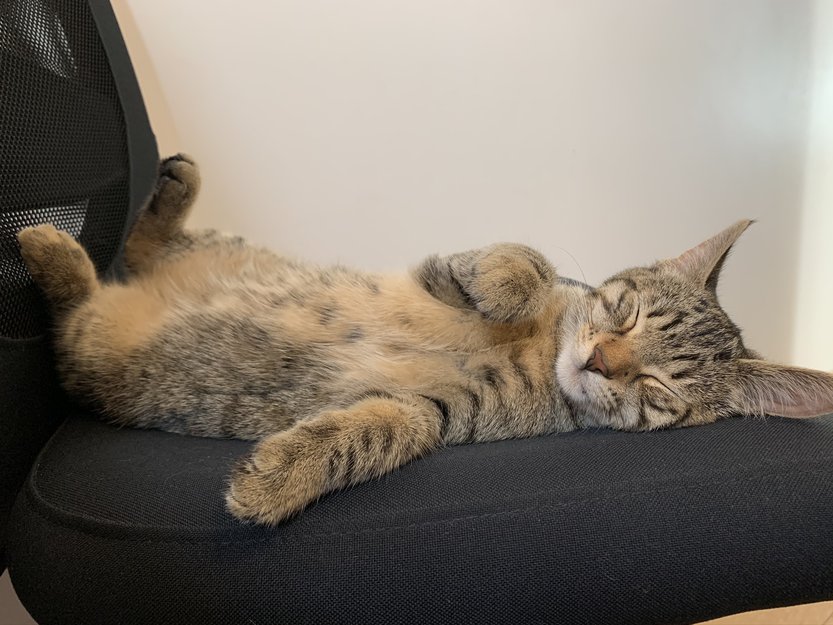 Stripete pels med tydelige tegninger i ansiktet, og sorte leopardprikker på magen. Han er veldig sosial, tillitsfull, og nysgjerrig. Han er litt over ett år gammel, kastrert, chippet og id-merket i øret.