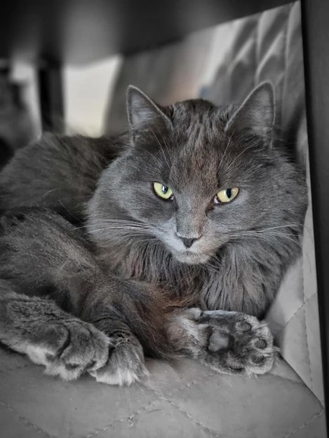 Grå, med hvit parti hunnkatt var savnet i Klepp