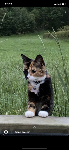 Liten i vekst.fin i pelsen. Kommer ofte når man roper på henne, men kan være litt skvetten.