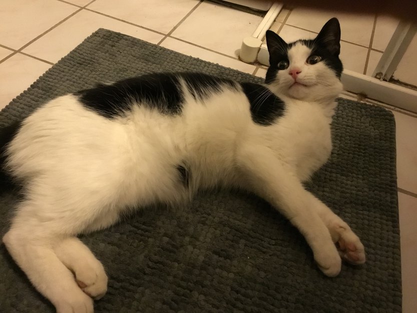 Lang og slank herremann . Kommer om en har godbiter . Er veldig kosete og savner han masse .
