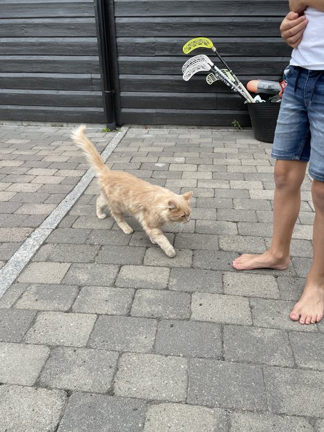 Fulgte etter barna mine hjem fra lysløypa. Har hengt rundt utenfor der vi bor i Kongleberget 38 i snart ett døgn nå. Nå virker den sulten og jeg er redd den ikke finner hjem.