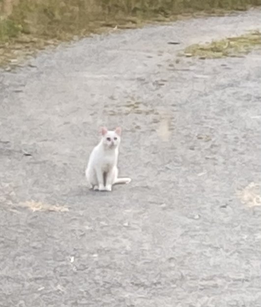 Hvit katt observert på Idse. Virker som den har vært lenge ute. Send melding om du gjenkjenner katten.