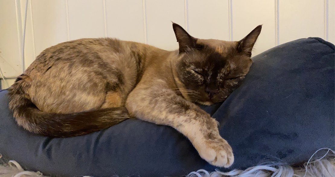 Hun har en liten haleknekk. Syntes ikke, men det kjenner man om man stryker på henne/ halen.